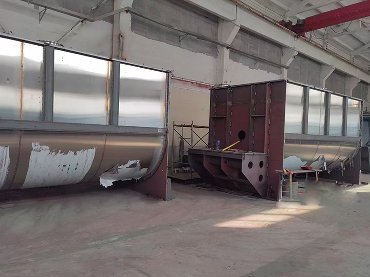 WLDH系列混合機的攪拌器主軸上,通常采用盤繞兩組方向相反的內、外雙層螺帶,工作時,快速攪拌物料。物料同時被外層螺帶向筒體中心推送,和被內層螺帶向筒體兩側推送,形成循環(huán)交錯的對流,最終實現(xiàn)混合效果。對流動性較差的物料,可設計刮片解決了傳統(tǒng)臥式螺帶混合機死角的問題。開機出料保證物料被外層螺帶向筒體中心推送從而保證出料干凈。